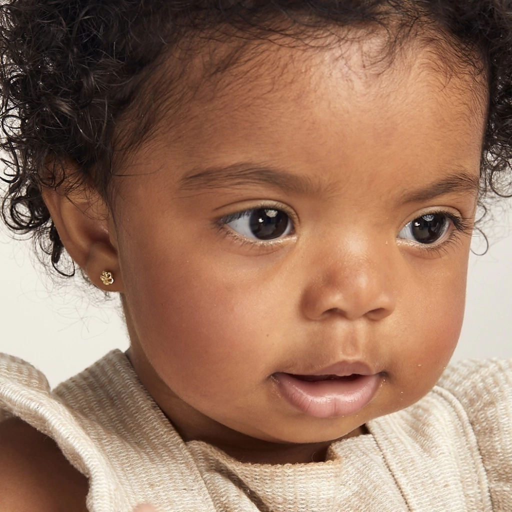 O brinco gominho é produzido em ouro amarelo 18k e diamante, mede aproximadamente 5mm de diâmetro e cada pé possui um diamante de 0,09mm.