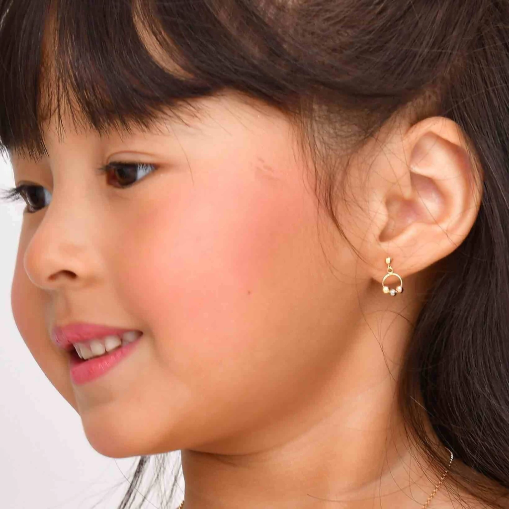 O brinco três bolinhas é produzido em ouro amarelo, branco e rose 18k, mede aproximadamente 12 x 6 mm.