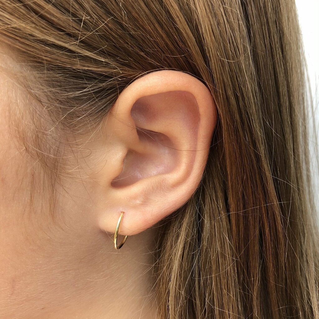 A argola lisa é produzida em ouro amarelo 18k, mede aproximadamente 14,5 x 12 mm de diâmetro.