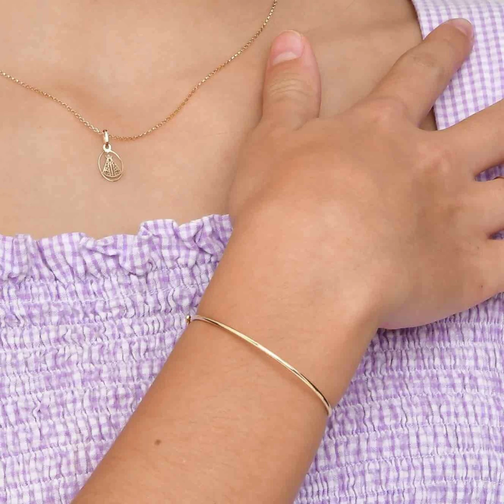 O pingente Nossa Senhora Aparecida é produzido em ouro amarelo 18k, mede aproximadamente 13 x 8 mm (sem considerar o elo).